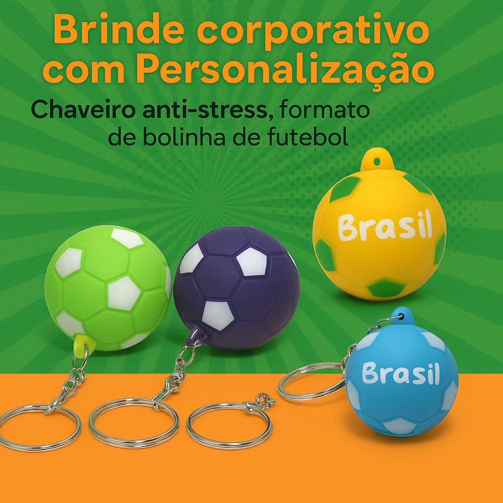Brinde corporativo com Personalização chaveiro anti-stress, formato de bolinha de futebol. Kit com 100 unidades. Chaveiro bolinha de futebol anti-stress. Tamanho total aproximado: 9,8 cm ( comprimento ) x 3,4 cm ( diâmetro ) Peso aproximado: 12g Descubra a solução perfeita para aliviar o estresse no ambiente de trabalho! Nossa bolinha de futebol em chaveiro anti-stress fisioterápica é a resposta para dias agitados. Com uma textura suave e estimulante, oferece relaxamento instantâneo para as mãos. Feita sob medida para proporcionar conforto, cada unidade possui 3,5 cm de diâmetro. O diferencial? A personalização! Cada chaveiro pode ser personalizada com a sua marca, garantindo que sua empresa se destaque. Este kit com 100 unidades é ideal para presentear colaboradores ou clientes, transmitindo cuidado e atenção à saúde e bem-estar. Ofereça um brinde que alivia o estresse e promova a sua marca simultaneamente! ATENÇÃO! DISPONÍVEL: 1 GRAVAÇÃO 1 COR. OPCÃO DE COR PARA A GRAVAÇÃO DA ARTE : Preto ou Branco. Antes de finalizar a compra, certifique-se que está com a arte em mãos. Assim que finalizar a compra, nos envie a sua arte . O ARQUIVO DO SEU LOGOTIPO DEVE SER ENVIADO EM FORMATO VETOR. PASSO A PASSO DE COMO ENVIAR SEU LOGOTIPO OU ESCRITA APÓS A COMPRA: 1 - IMEDIATAMENTE após a compra, nos chame no chat da venda e nos passe sua logotipo ou explique o projeto já informando a escrita que você pensa em colocar. 2 - Envie a logotipo para o canal informado por um dos nossos consultores de venda. 3 - Aguarde a conclusão do projeto que entraremos em contato para sua aprovação. IMPORTANTE ESTAR ATENTO AO NOSSO RETORNO PARA QUE SEJA CUMPRIDO O PRAZO DE ENTREGA. APÓS A APROVAÇÃO DA ARTE, A PERSONALIZAÇÃO É FEITA E NÃO TEM COMO VOLTAR ATRÁS. NÓS NÃO NOS RESPONSABILIZAMOS POR POSSÍVEIS ERROS NA HORA DA ESCOLHA DO CLIENTE. DADOS TÉCNICOS Material: Vinil de alta qualidade. Dimensões: Diâmetro de 3,4 centímetros. Peso: 12 gramas Textura: Superfície macia e suave. Personalização: Tampografia disponível nas cores Branco ou preto. Quantidade: 1 kit com 100 unidades. Uso recomendado: anti-stress e fisioterapia de mãos. Benefícios: Leve, ergonômica e ideal para brinde corporativo.