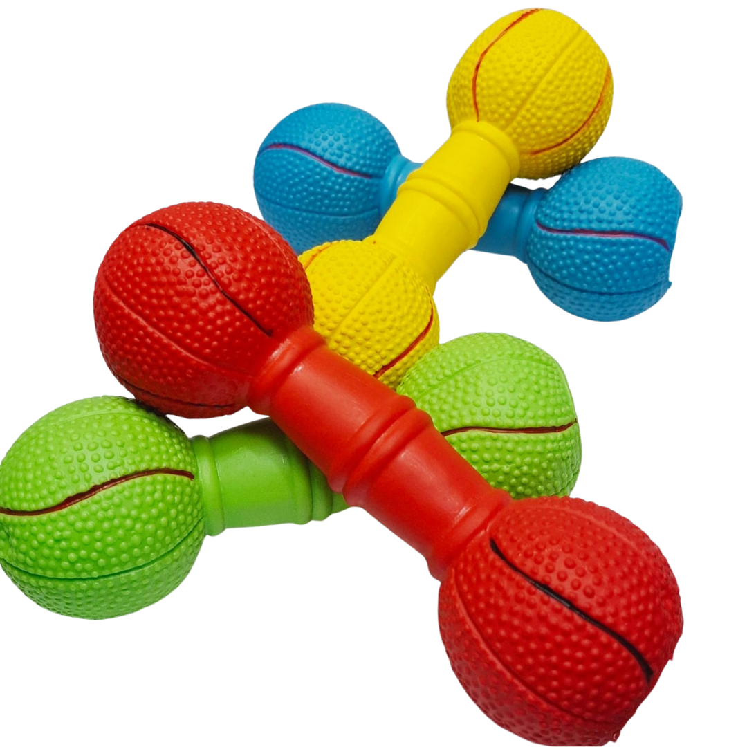 BRINQUEDO PARA PET HALTERES BRINQUEDO HALTERES, de cor sortida. É feita de material vinílico (parecido com borracha), atóxico, um ótimo brinquedo para seu pet. A interação com o brinquedo faz com que eles sintam-se acolhidos e recompensados por todo carinho e lealdade que eles tanto nos dedicam, trazendo maior conexão entre você e seu melhor amigo. DADOS TÉCNICOS: MARCA: KEVINBRINQ COMPOSIÇÃO: VINIL QUANTIDADE: 1 MEDIDA : 07CM X 17CM X 3,5CM COR: SORTIDA As cores podem variar conforme disponibilidade de estoque. ATENÇÃO: Recomendado para animal de pequeno e médio porte; Os brinquedos são exclusivos para animais domésticos; Nenhum brinquedo é indestrutível, retire ao ver sinais de deterioração; Não permita seu animal de estimação usar o brinquedo deteriorado; Não permita que seu animal engula ou mastigue partes do produto; Recomendado a supervisão na utilização do brinquedo.