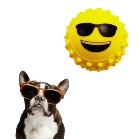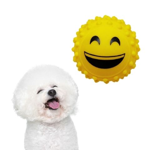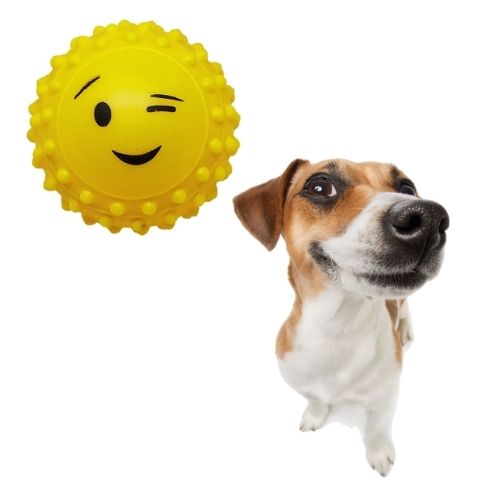 Bolinha antistress Cravo Emoji Mordedor para adestramento pet Os brinquedos para cães tem como finalidade diminuir a ansiedade e o tédio do seu pet, estimulando seus instintos e liberando toda a energia que o seu cãozinho necessita para manter-se ativo e saudável. A textura da bolinha com cravinhos ajuda a massagear a gengiva do cão, tornando a brincadeira mais prazerosa para seu pet. Benefícios: Ajuda na higiene bucal do cão, prevenindo o acúmulo de bactéria e tártaro. Sacia a vontade de mastigar. Alivio do estresse e tensão. Enriquecimento sensorial, cria sensações de desejo, caça e bem-estar. Caractéristicas: Atiestresse Borracha macia super resistente Lavável Dados técnicos: Marca: Kevinbrinq Composição: Vinil atóxico Quantidade: 01 UNIDADE Diâmetro: 5,3cm Cor: amarelo Produto 100% Brasileiro ATENÇÃO: Recomendado para animal de pequeno e médio porte; Os brinquedos são exclusivos para animais domésticos; Nenhum brinquedo é indestrutível, retire ao ver sinais de deterioração; Não permita seu animal de estimação usar o brinquedo deteriorado; Não permita que seu animal engula ou mastigue partes do produto; Recomendado a supervisão na utilização do brinquedo.